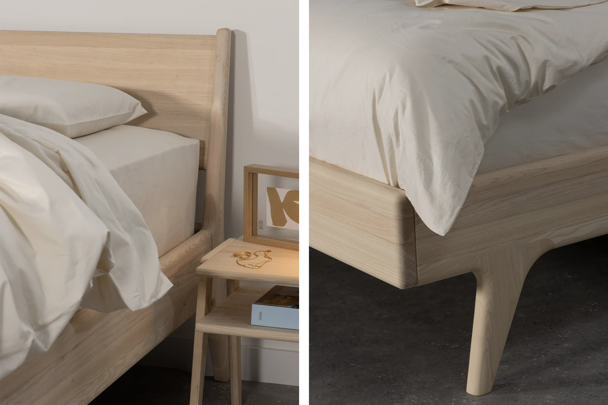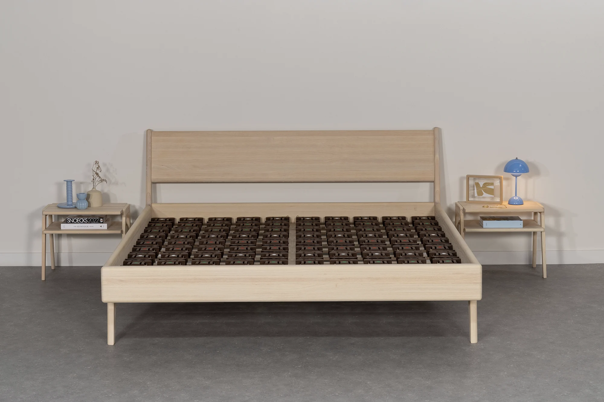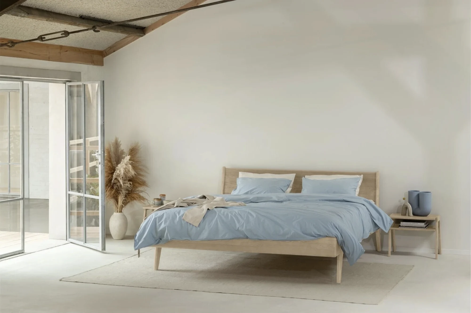 Het Pure bed brengt de schoonheid van de natuur direct naar je slaapkamer. Met zijn zacht afgeronde hoeken en serene uitstraling creëert dit bed een harmonieuze omgeving waarin je volledig tot rust komt. Het gebruik van massief hout en pure materialen zorgt voor een warme, natuurlijke sfeer. Het geïntegreerde hoofdbord biedt extra ondersteuning en versterkt het tijdloze, minimalistische design.